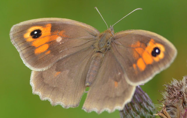 The Ringlet is common along these rides and didn't disappoint. I do have a soft spot for this simply decorated insect. You don't need an extravagantly bedecked creature to exhort wonder. Those simple five stars with a halo edging to the wings stops me in admiration.